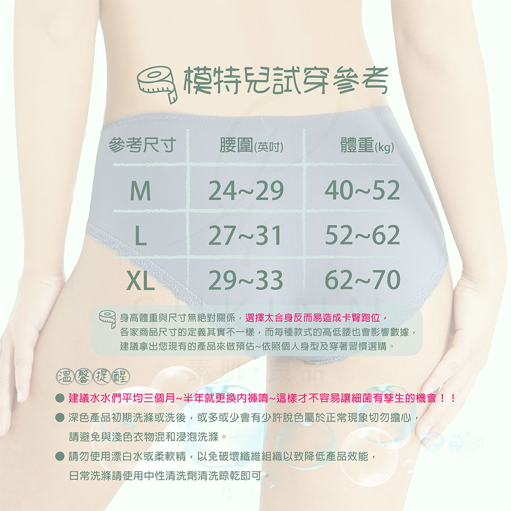 底褲採用天然礦物質 氧化鋅
